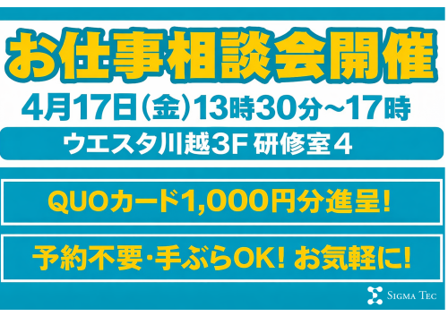 | 担当 | 株式会社シグマテック 川越事業所 採用担当 |